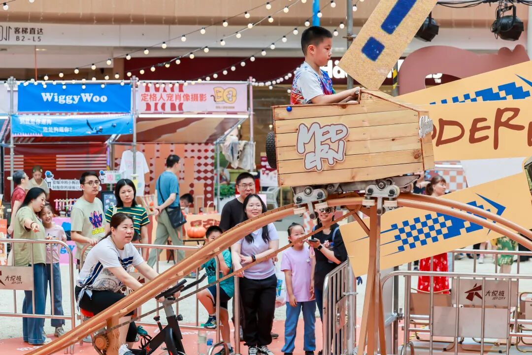 “快乐不分年代,梦幻复古就现在!”近30家精心打造的复古摊位组成了一条充满怀旧气息的时尚长廊。复古服饰、潮流好物、手作艺术……每个角落都藏着惊喜。一辆无动力小火车载着孩子们的欢声笑语,缓缓穿梭在市集之间,不仅唤醒了童心,也让许多“大朋友”找回了童年的纯真。特邀的摩登马戏小丑则化身快乐的使者,在人群中巡游互动,将一个个缤纷的气球送到孩子们手中,节日的喜悦与惊喜感染了在场的每一个人。