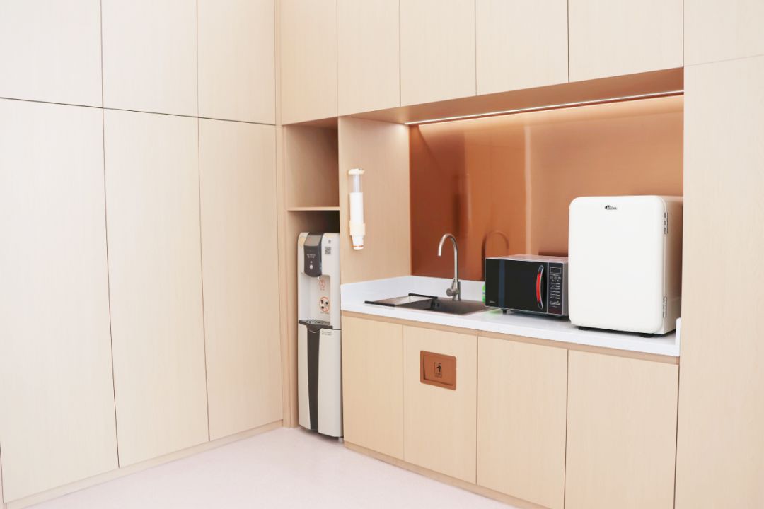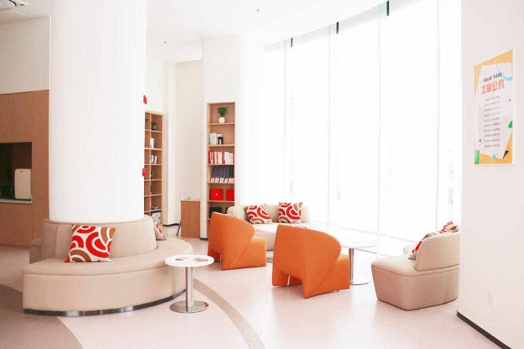 步入小屋,半圆弧形前厅设计兼具美学和实用,站内服务功能丰富多元,契合市民多样化的使用需求。公共休息区设有舒适的阅读空间,供市民短暂休憩与自主学习;共享服务区提供轮椅、雨伞及充电宝租赁服务;茶水区配备饮用水、冰箱及微波炉,方便日常使用;应急救助区则放置急救设备与常规药品,保障突发需求。此外,驿站还特别设置无障碍卫生间与母婴室等人性化设施,充分体现对老年人、儿童及特殊群体的人文关怀。