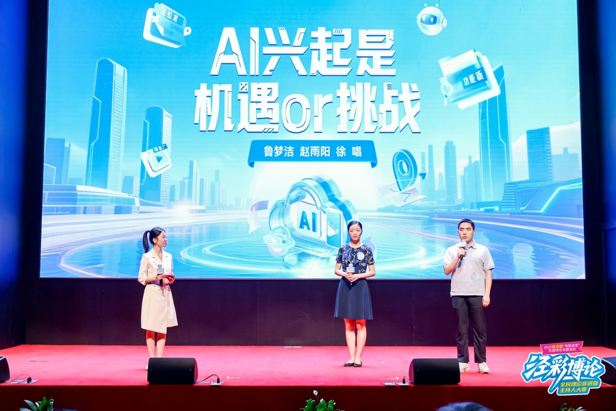 现场七大组别的比拼形式多样、内容多元。唱跳演绎、新闻时评、情景朗诵、脱口秀、正反辩论等生动形式轮番上演,话题覆盖中国式现代化、文化出海、AI技术、文明倡导等热点,为观众奉上一场理解时代、认知世界的思想“接力赛”。